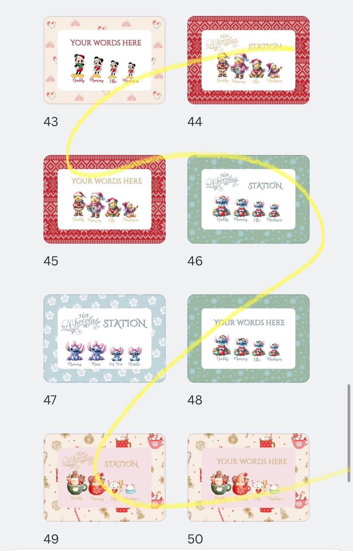 Please state design, wording, how many of each characters etc π
